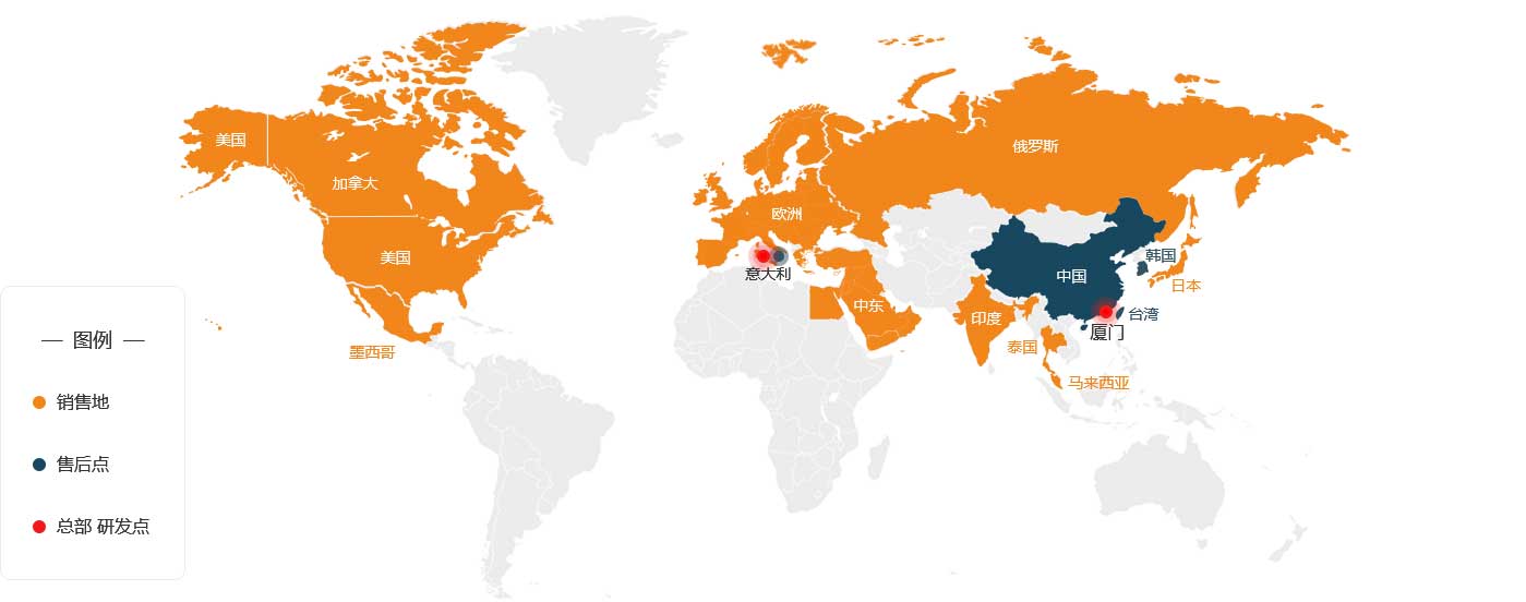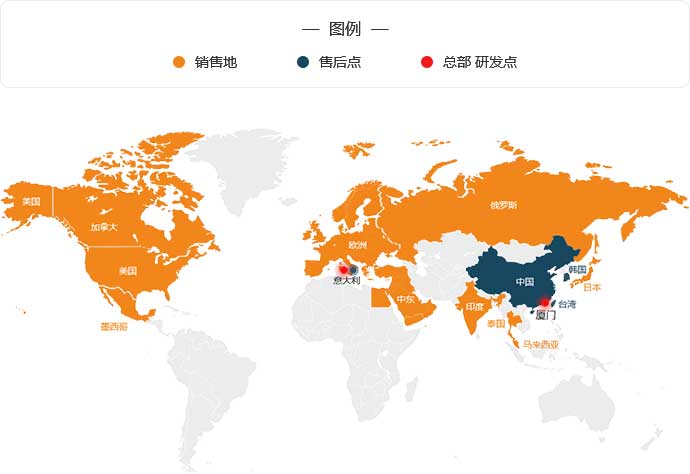 售后據(jù)點(diǎn):中國(guó)、意大利、臺(tái)灣、韓國(guó)